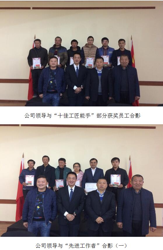 公司按照“年度十佳工匠能手”、“年度先進工作者”、“海外工作貢獻獎”的三個類別對員工進行表彰,頒發(fā)榮譽證書、頒發(fā)海外工作貢獻獎金牌、頒發(fā)獎金、留影合照,精神鼓勵為主,物質(zhì)獎勵為輔。頒獎合影環(huán)節(jié)將會議推向高潮,引起在座員工內(nèi)心共鳴,不由地為他們鼓掌祝賀,以表達對他們敬業(yè)愛崗、吃苦耐勞精神的深深敬意!